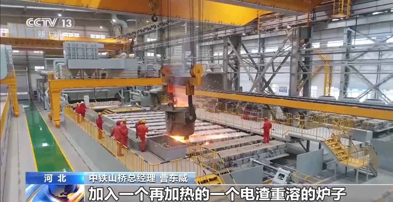 中鐵山橋總經理 曹東威:一個是真空精煉爐, 也就是說去除有害的氣體,氫、氮、氧。還有在冶煉的后續環節加入一個再加熱的電渣重熔爐子,這樣整個出鋼水的質量等級會大幅提高。