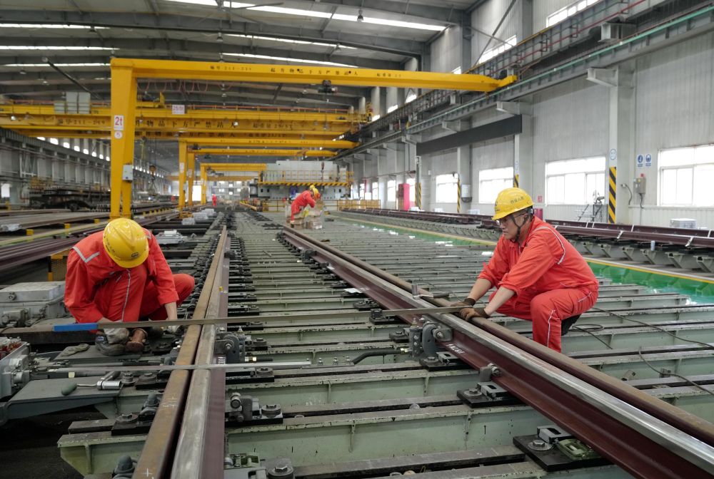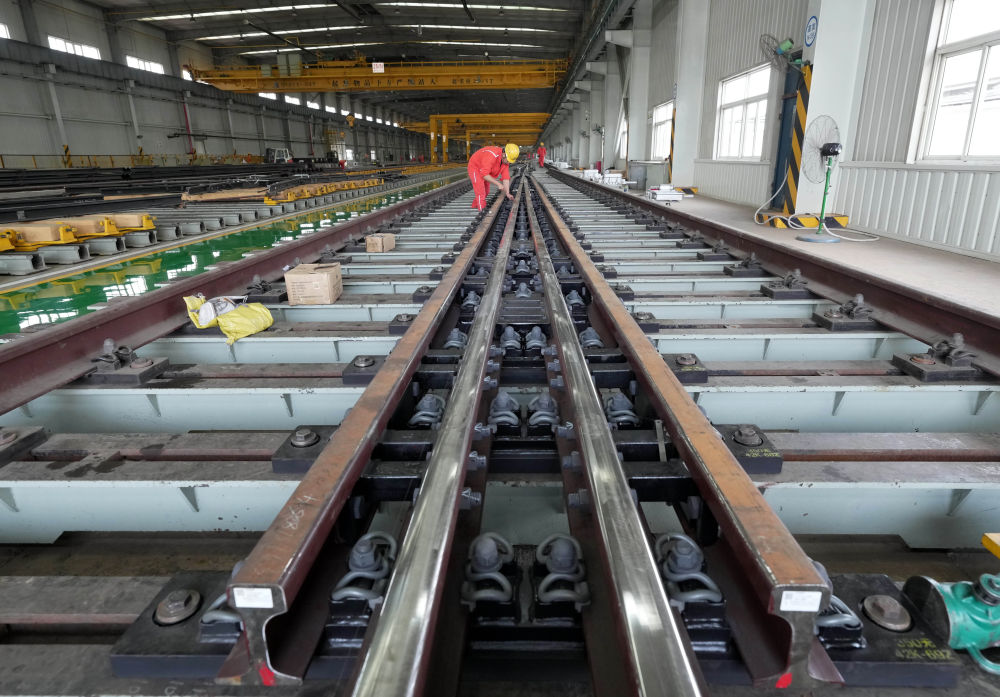 ??↑6月11日,河北省秦皇島市山海關(guān)區(qū)中鐵山橋集團(tuán)有限公司的工人在道岔生產(chǎn)車間工作。 近日,隨著國內(nèi)一些重要鐵路及地鐵項目有序推進(jìn),承接鐵路道岔生產(chǎn)任務(wù)的河北省秦皇島市山海關(guān)區(qū)中鐵山橋集團(tuán)有限公司生產(chǎn)車間內(nèi)一派繁忙,工人們正保質(zhì)保量加緊生產(chǎn),助力中國鐵路交通建設(shè)。中鐵山橋始創(chuàng)于1894年,生產(chǎn)的道岔產(chǎn)品遠(yuǎn)銷30多個國家和地區(qū)。 新華社記者 楊世堯 攝